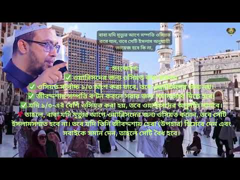 বাবা যদি মৃত্যুর আগে সম্পত্তি ওসিয়ত করে যান, তবে সেটি ইসলাম অনুযায়ী জায়েজ হবে কি না, তা নির্ভর করবে কয়েকটি বিষয়ের ওপর: