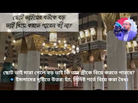 ছোট ভাই মারা গেলে বড় ভাই চাইলে তার বিধবা স্ত্রীকে নির্দিষ্ট শর্ত মেনে বিয়ে করতে পারেন, তবে এটি বাধ্যতামূলক নয়, এবং অবশ্যই স্ত্রীর সম্মতি থাকতে হবে। 😊